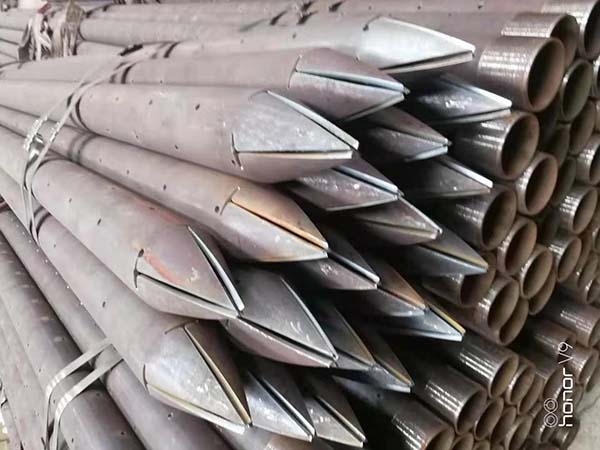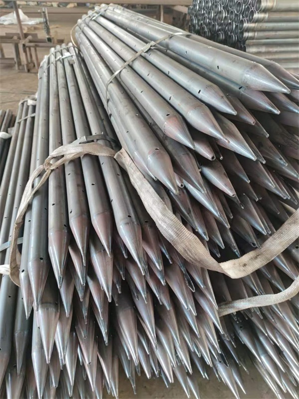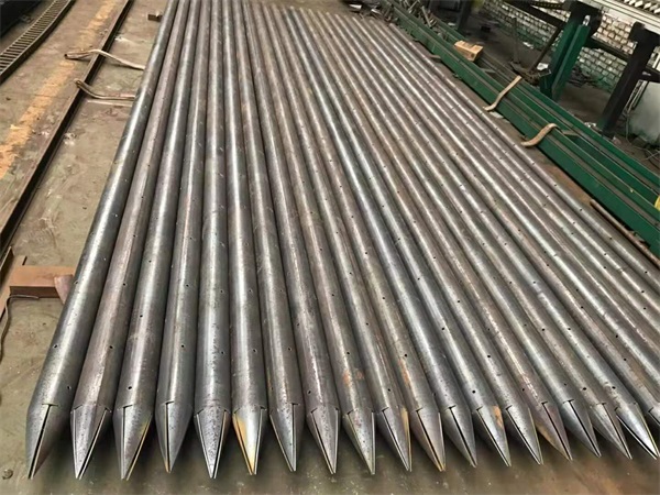 鋼花管在注漿時要保證放在鉆孔中心,確保鋼花管周圍保護層厚度均勻鋼花管在上部要焊接支撐鋼筋。鋼花管上部支撐鋼筋類型為4根Φ20mm,單根長度為340mm采用雙面焊接,與鋼花管壁焊接長度為200mm,支撐與地面長度為140mm。焊接過程中不得澆水,焊接完后自然冷卻。鋼管底蓋:由于一次注漿時,水泥漿不能進入鋼管內,加工時將最下一節鋼花管底部用鋼板焊接密封,鋼板厚5.0mm鋼板中心鉆一個Φ22mm的孔,一次注漿的PVC管將從此孔穿過鋼管除銹,用砂紙或鋼絲球將鋼管表面除銹以提高水泥漿與鋼管的粘聚力。除銹也有利于膠帶與鋼管粘結,防止水泥漿從孔眼冒漿鉆孔采用機械鉆進成孔,成孔直徑Φ148mm,施工中應保證無水鉆進,每孔超鉆20cm。測量定位:根據數據放孔位,鉆孔孔位允許偏差≤50mm。